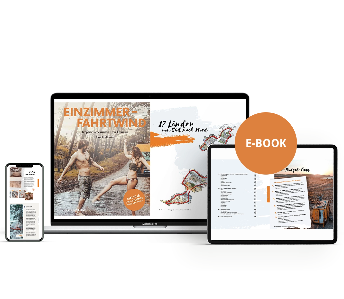 Endlich gibt es das original „Einzimmerfahrtwind“ Buch auch im E-Book Format. Perfekt für alle Van-Life begeisterten Traveler habt ihr alle Reisetipps, Packliste, unzählige ausgewählte Spots und vieles mehr immer im Gepäck. Jetzt einfach digital herunterladen für Smartphone, Tablet, Laptop oder Kindle.